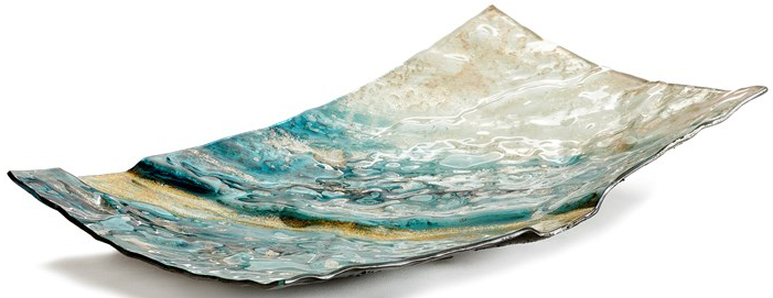 This richly textured rectangular plate in calming blue, white and gold features a bold black edge.Read More