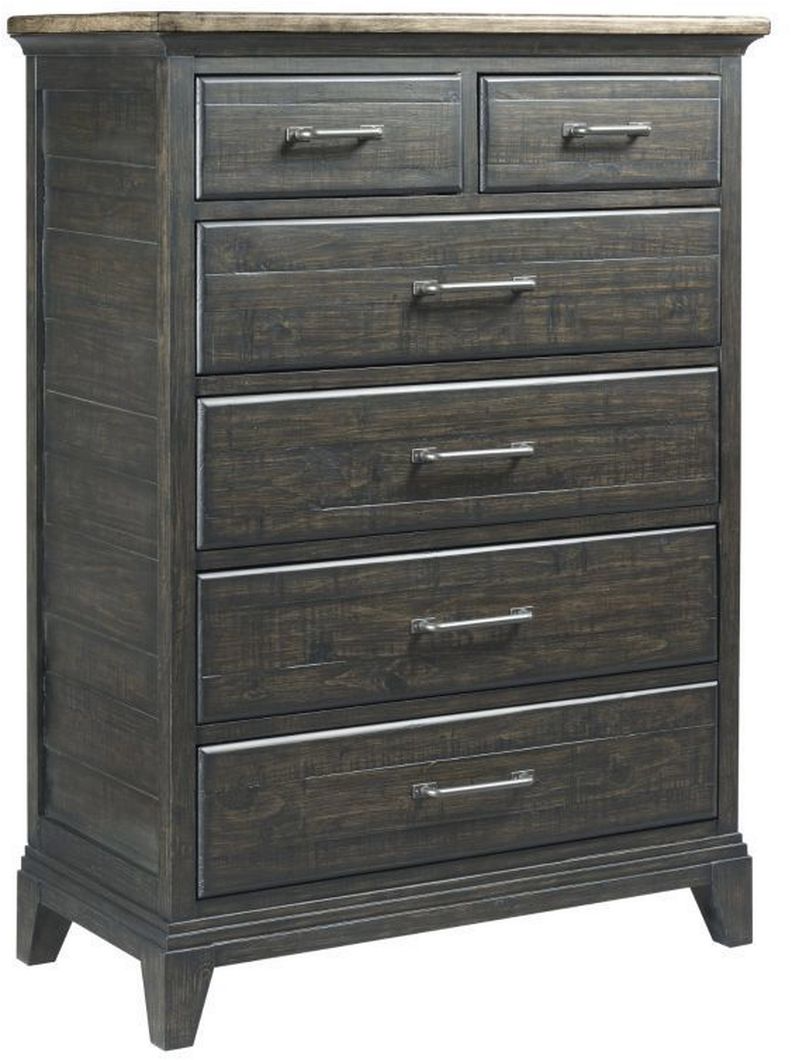 Inspired by the rugged solid wood roads that America traveled, Plank Road is a tribute to the sturdy resolve that is our heritage. Every solid wood board presents its own personality while playing a part in the broader story. Avoiding unnecessary embellishments, the beauty of the furniture's construction is enough. The collection features a casual, organic style that blends modern and vintage design influences with the natural character of solid wood furniture. Two finish choices are available across the assortment: Stone - a natural brown tone that lightly shades the pine lumber Charcoal - just as the name suggests, except these pieces feature the contrasting Stone finish on the tops for a two-tone look
