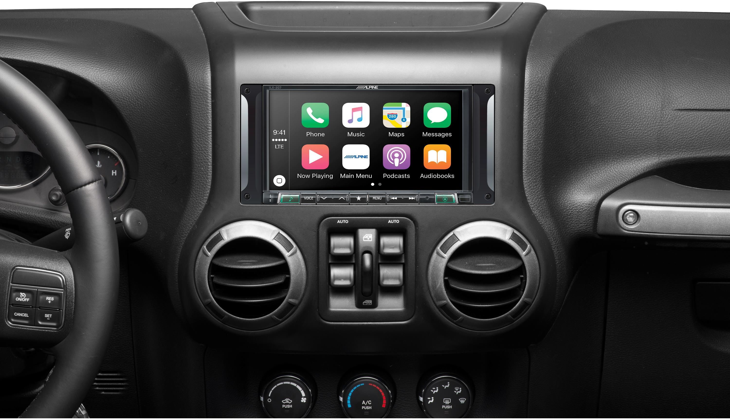 The 7" i207-WRA is Alpine engineered for the Jeep Wrangler. The i207-WRA comes with an Alpine-designed dash kit that mounts to the 7" screen and provides a matching fit and finish to your Wrangler, as if it came that way from the factory. The i207-WRA is mechless (no CD/DVD slot) but still has more than enough entertainment options to keep your drive enjoyable.