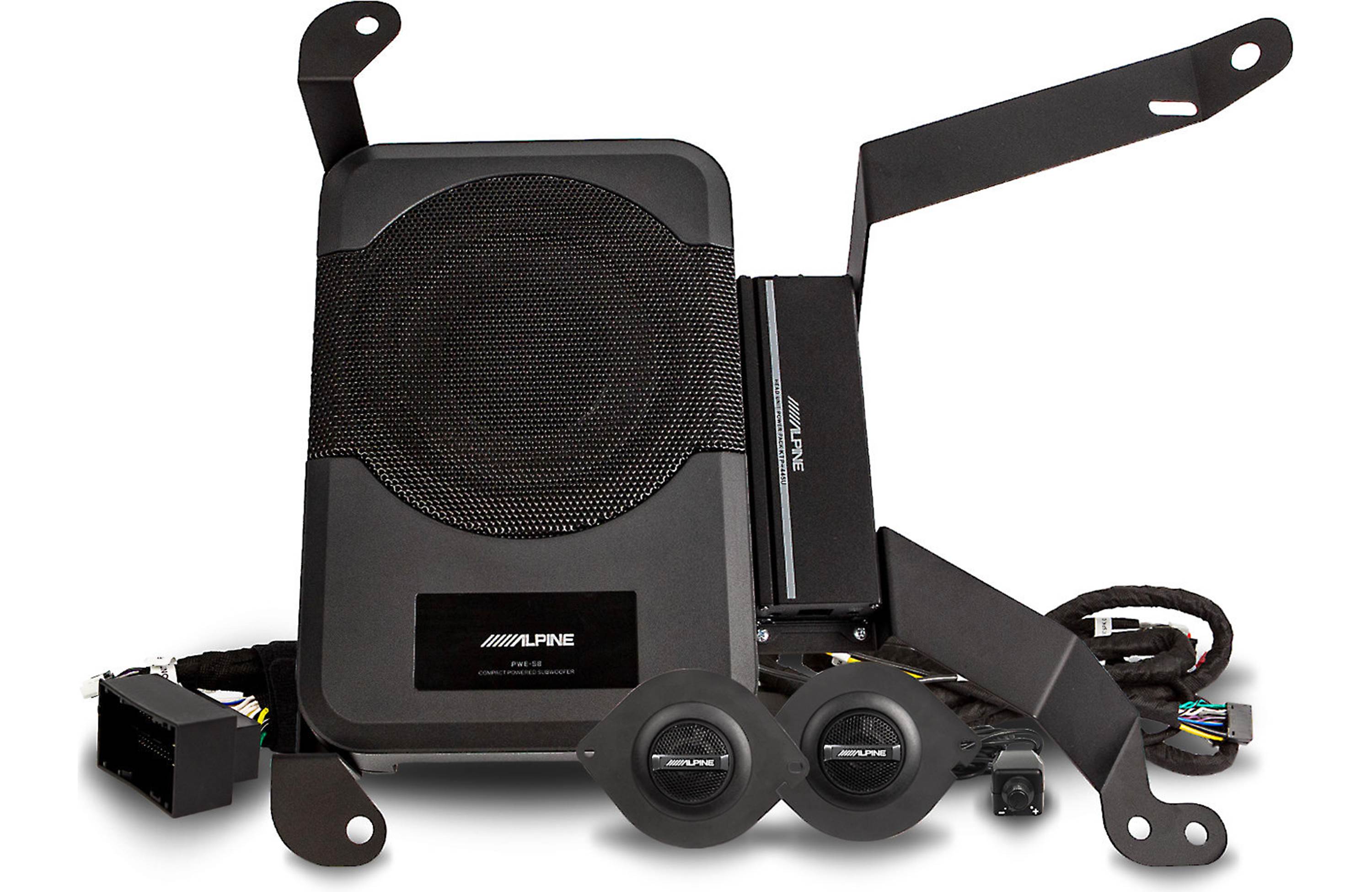 The included T-harness gets the necessary audio signal connections from behind the Wrangler’s radio, making installation a breeze. The PSS-23WRA is compatible with Alpine universal head units, the factory Jeep base radio, or other aftermarket radios.
