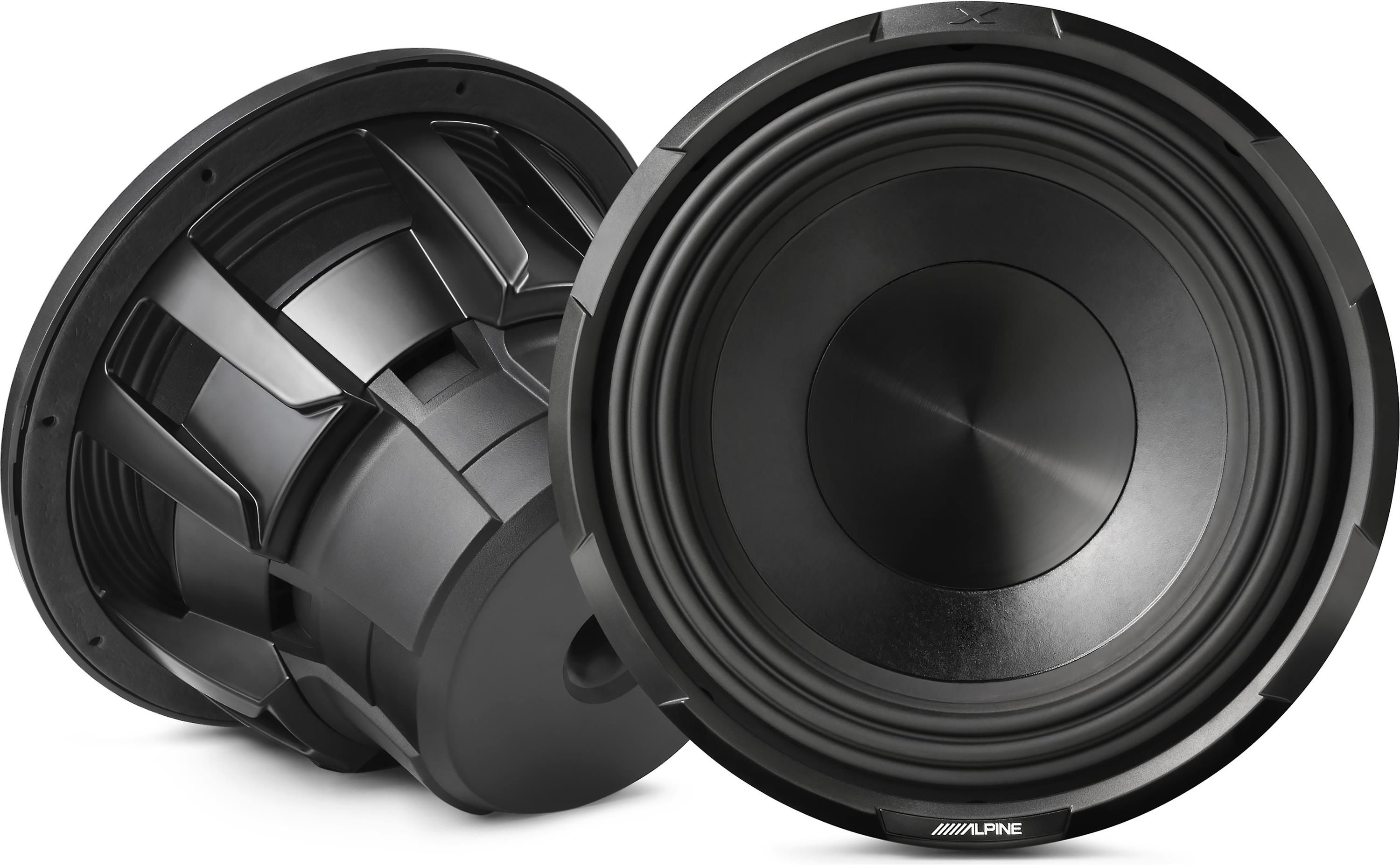 The New X-Series subwoofers were developed from a sound philosophy we call Alpine ID – a focus on highly accurate components built for superior imaging. A triple stacked magnet surrounds an extended voice coil which allows a very long excursion resulting in huge air movement. A specialized CRC pole with integrated cooling fins and an aluminum shorting cap reduce the lag of coil’s alternating movement while also providing cooling within the motor. The cone structure is suspended by two spiders and our patented H.A.M.R. surround. The stability of the dual-spider along with the even unfolding of the multi-roll surround create incredibly linear cone travel, free of any unneeded movement that cause distortion.
