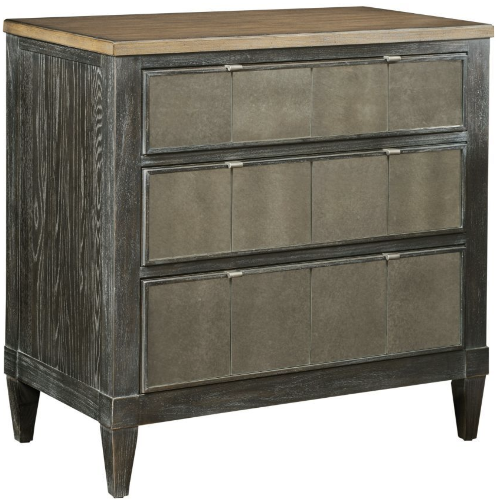 Inspired by French Neoclassical design, Ardennes features the primary shapes of that classic period but leaves the more ornate details behind. The result is an updated, casual style that blends perfectly with today's home. It is made using wire brushed White Oak that is finished in a Black Forest finish on the cabinets and bases with contrasting tops finished in a Brindle tone. Notable design elements include shaped drawers, tapered feet, neoclassical chairs, and antique mirror accents on several pieces.Read More