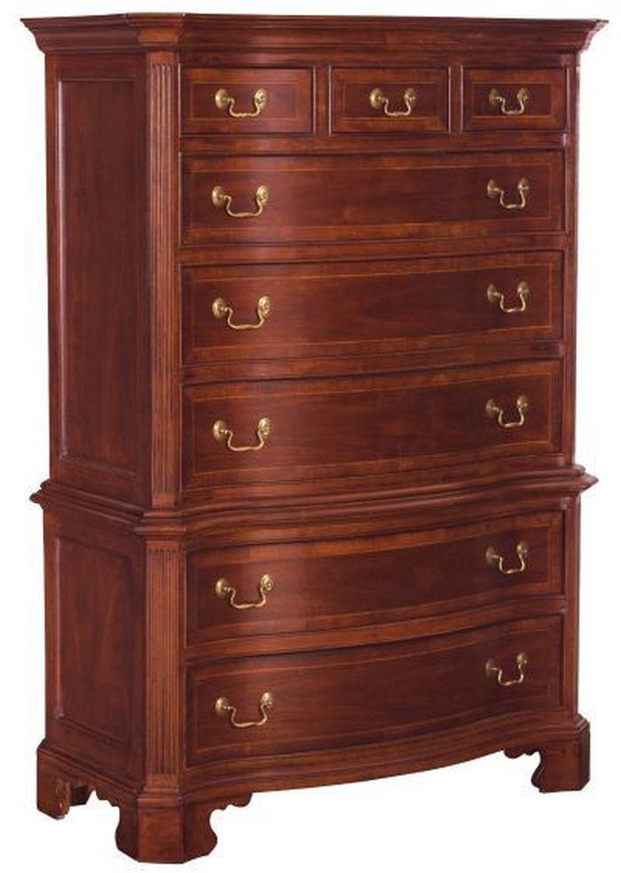 Chest on chest comes with eight drawers, bracket feet, reeded pilasters, framed end panels, clipped corners and inlays to keep with the traditional styling of today's homes.