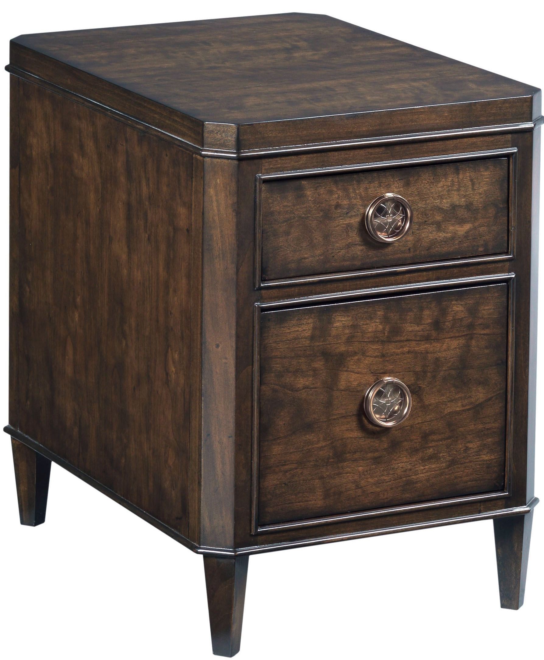 The Grantham Hall collection is classic and comfortable with subtle 18th century style influences highlighting a sophisticated, modern design. Simple lines allow the more detailed features to take stage without being overstated. The end result is both elegant to look at and yet comfortable to live with. Rogue Cherry veneers with figured grain highlights are the feature element of Grantham Hall. The finish is a deep coffee tone that sets off the metal work in the hardware. An open arabesque design motif is found in the champagne finish hardware, wooden fretwork and overlays. Other design touches include subtle inlays on select tops, reeded accent molding, hand-hammered nail-head trim and ferrules on the feet of certain items.