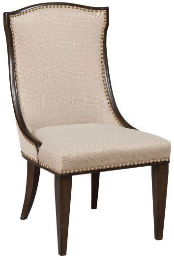 Spectacular shaped dining chair that sets this group apart. Upholstered in a neutral pattern to fit any room.Read More