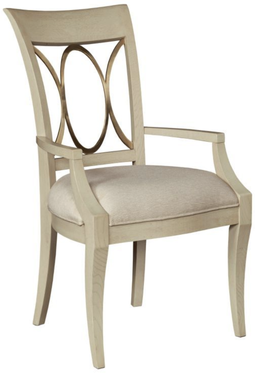 This dining chair features an elegant theme of royalty. Details like light upholstery and gentle curving give to this transitional piece a touch of glamour.