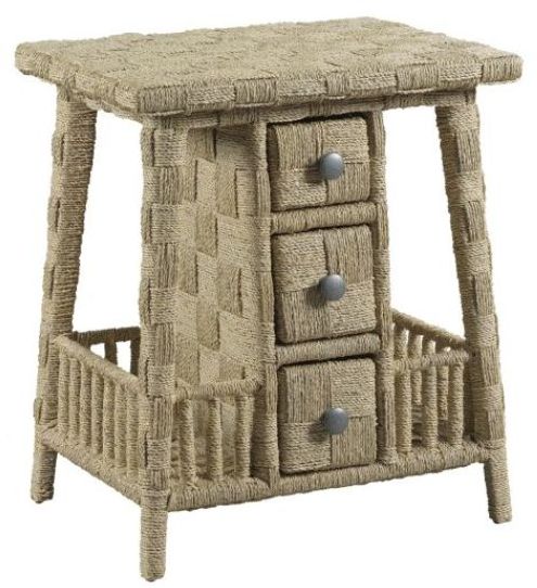 The collection features thick oak veneers in a driftwood finish against the soft texture of sun-washed paint. Metal elements along with accents of denim blue and natural, woven cane add to the personality.Read More