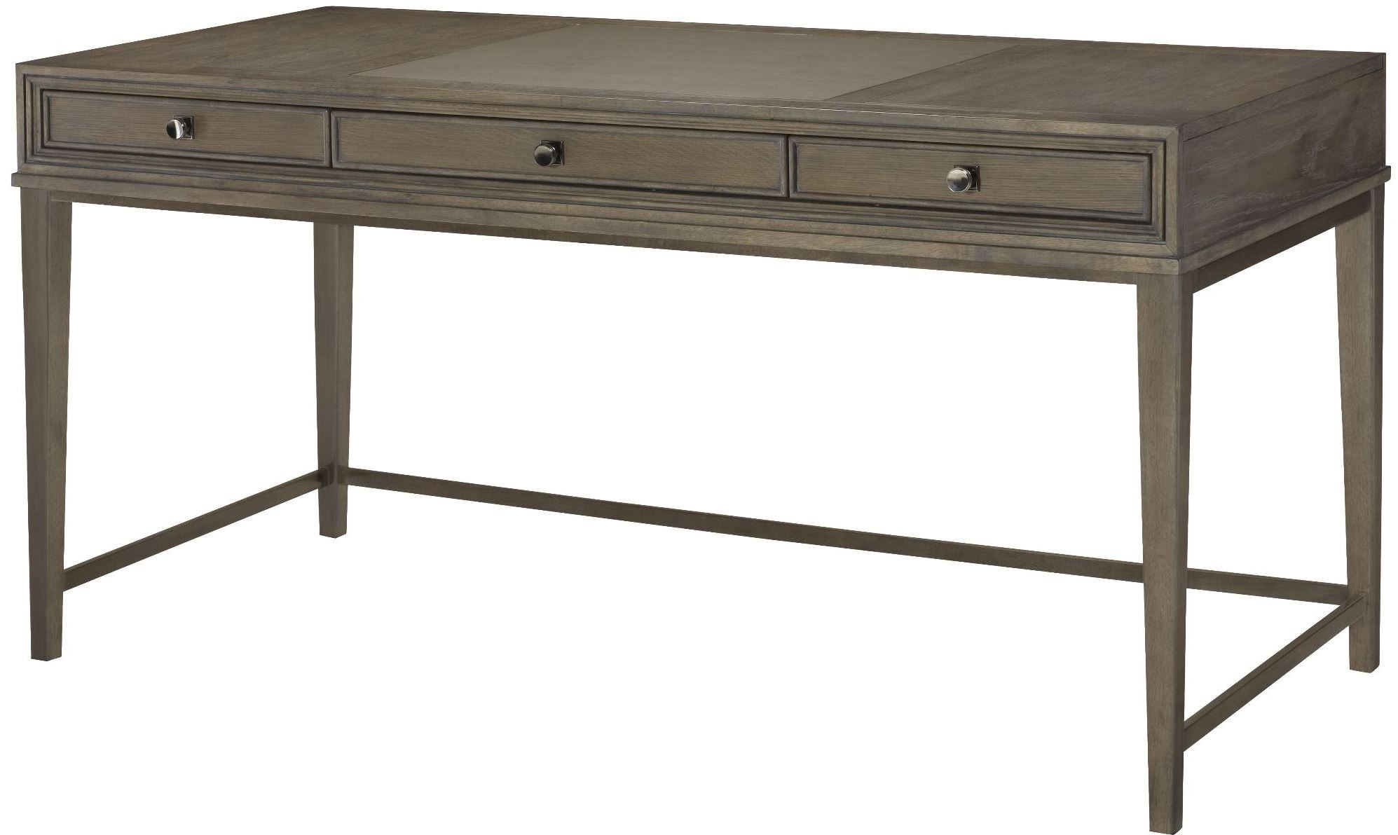 Park Studio is Casual, urban, lifestyle, eclectic, modern, simple, informal and comfortable. Finish is weathered taupe with a grey wash coat on quartered white oak veneers and hardwood solids. Ash burl veneers accent the table tops and select drawer fronts. The custom hardware has campaign elements with the flat back plate and handle pull, in a dark nickel finish for an updated look. Sunbrella fabric is featured on the upholstered pieces throughout the group.