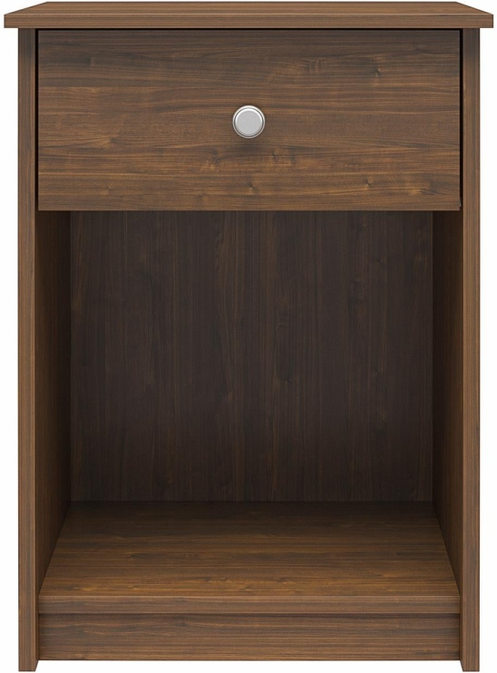 Keep your bedroom essentials and cell phone within arm’s reach on a convenient Nightstand with Drawer. Available in several traditional neutral finishes, this Nightstand is the perfect addition to your bedroom. The Nightstand is constructed of laminated particleboard for a cost effective build that is both trendy and functional. The Nightstand has a bottom cubby that can be used to store books or magazines while the drawer offers concealed storage. Use the top surface for a reading lamp or use it to display a few accessories for added style