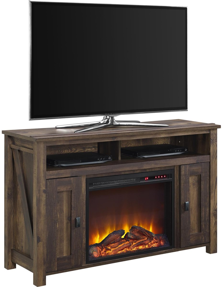 Bring the outdoors in with the rustic look of the Ameriwood Home Farmington Electric Fireplace TV Console for TVs up to 50” wide or 55 lbs