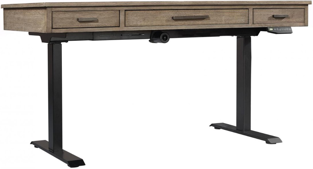 This collection provides a soft industrial style combining solid wood and a lightly wire-brushed Acacia veneer with stylish brushed metal. There is a wide array of choices to help you build your perfect workspace and includes features such as built in power outlets, utility function, locking storage and drop front drawers.Read More