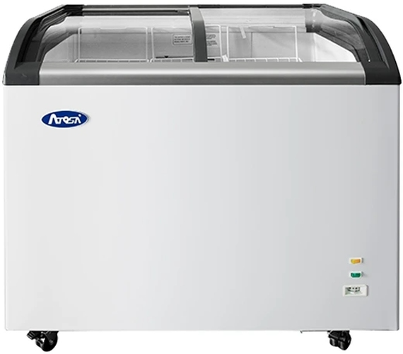 Atosa Glass Lid Curved Top Freezer MMF9110 and MMF9113 are uniquely designed with high value for perfect storage of ice cream and all types of frozen merchandise and seasonal specialties