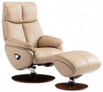 Split back 360-degree swivel pedestal chair with auto-return, 35-degree forward adjustable headrest, 115 to 160-degree lever controlled reclining back with the synchronized movement of back and seat. 15-degree angle adjustable ottoman. Teak finished disk base.