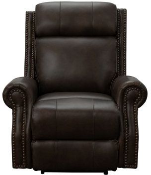 Stately winged pub back recliner with power headrest and power recline. Features kneed back rolled arms and pocketed coil pad over chaise seating. Designed for taller individuals with a 45” high back and automatic 3” footrest extension. Wings and arms are accented with nailhead trim.Read More