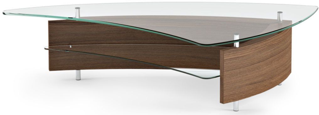 BDI Fin™ 1106 Coffee Table-Natural Walnut with one glass shelf and hardwood veneerRead More