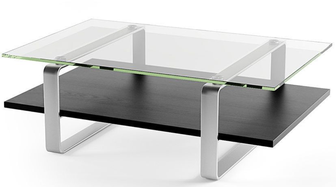 BDI Stream™ 1642 Coffee Table-Charcoal Stained Ash with satin-nickel plated steel and polished tempered glassRead More