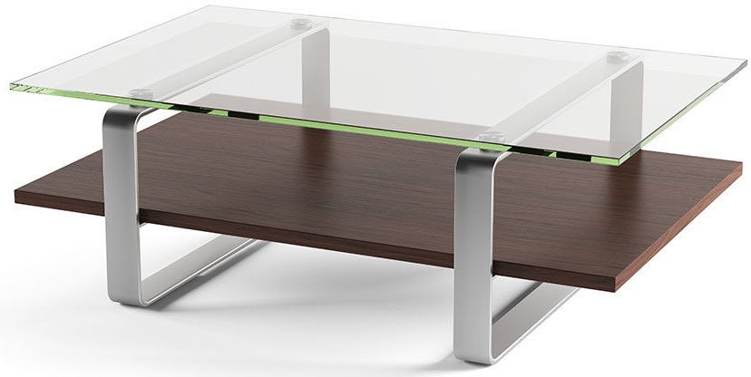 BDI Stream™ 1642 Coffee Table-Chocolate Stained Walnut with satin-nickel plated steel and polished tempered glassRead More