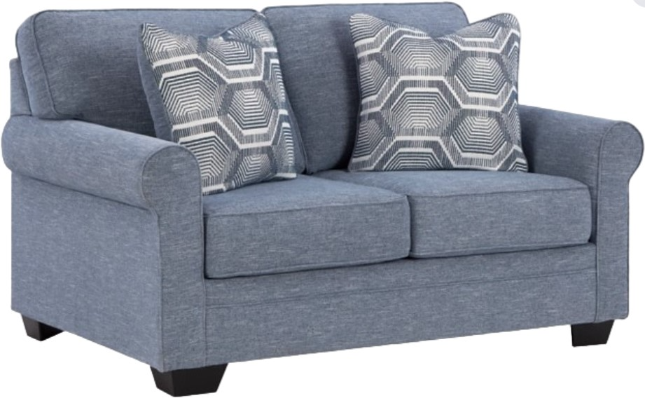 This loveseat is defined by comfort, convenience and classic style. Soft to the touch and stain-resistant, the family-friendly Next-Gen Nuvella™ fabric is easy to maintain. And you'll love the universal appeal of its denim-inspired hue. With roll arms adding a dash of traditional flair, the loveseat is a simply chic approach to everyday relaxation.Read More