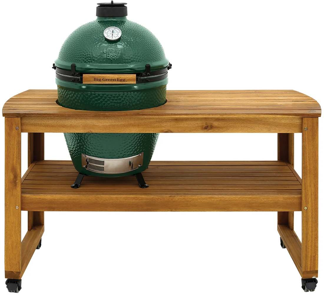 Big Green Egg Acacia Hardwood Tables are fabricated from all-natural, kiln-dried solid planks of genuine acacia wood, which is highly regarded for its excellent weathering characteristics. Each table offers ample and convenient working and serving area for the Large EGGs. Includes easy-leveling leg pads.Read More