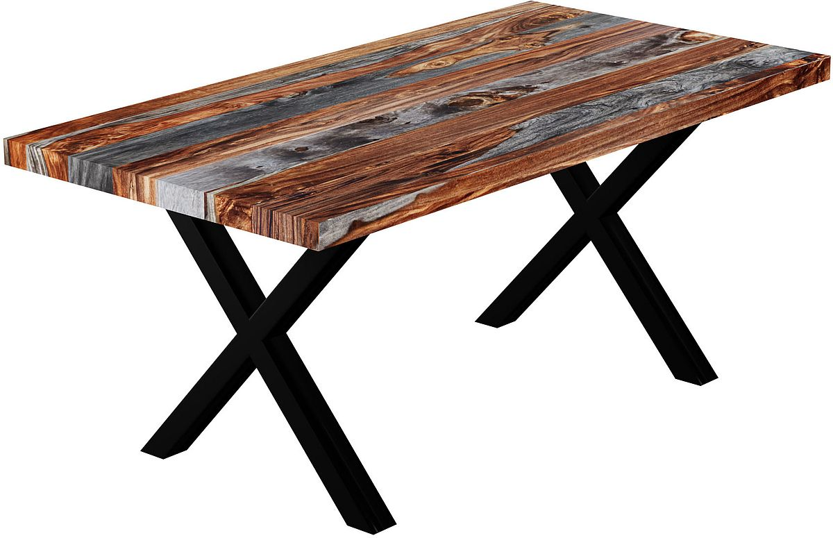 Rustic beauty meets modern charm with this beautiful solid wood dining table. This table blends 2 different coloured wood, showing off the natural wood grain. A timeless addition to any dining space.Read More