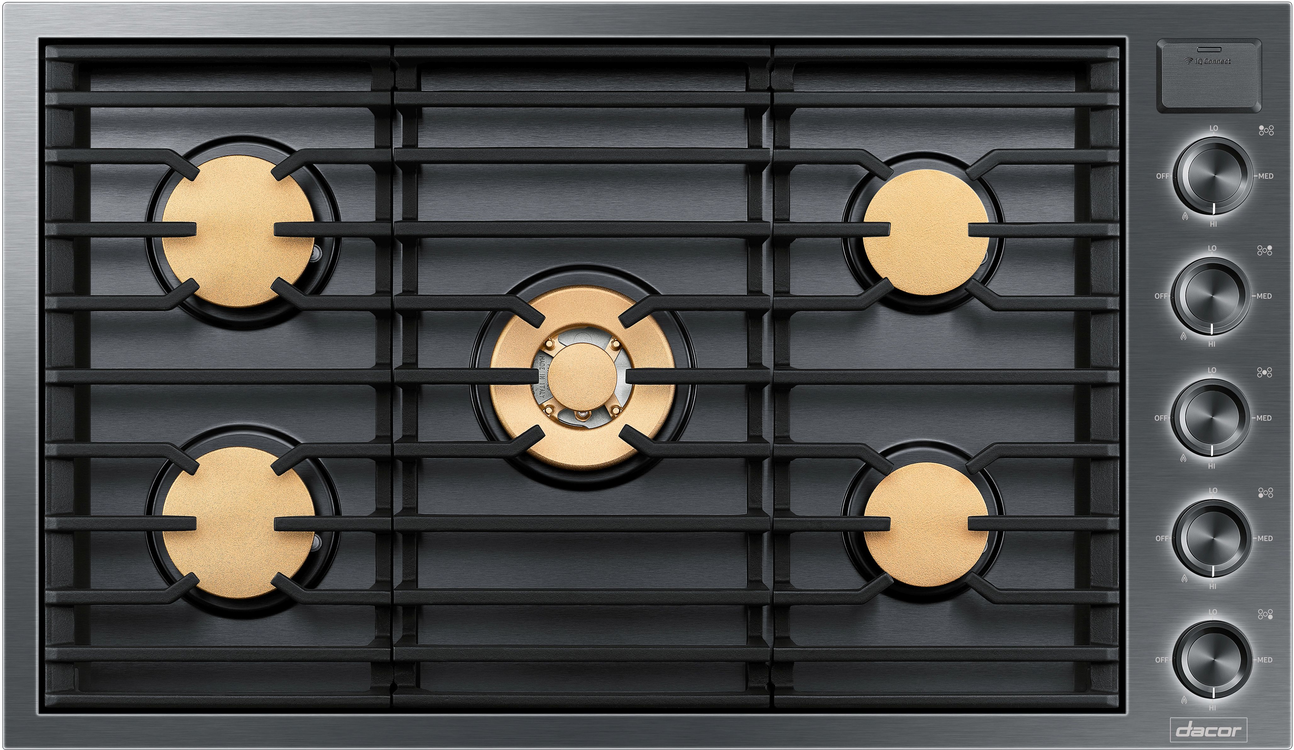 Dacor® Modernist 36" Gas Cooktop in Graphite Stainless Steel with 5 burners, auto-reignition and continuous grates.Read More