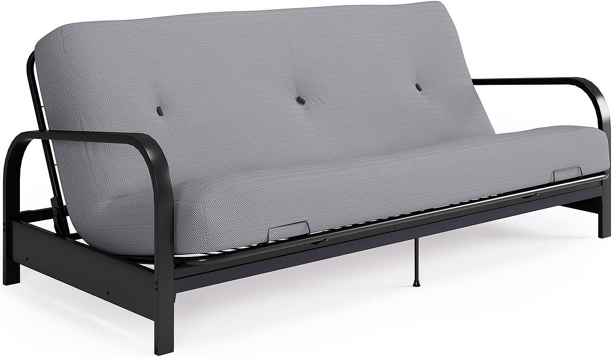 Attaining the perfect level of casual contemporary comfort doesn’t mean having to sacrifice style, space or your wallet. You can have your cake and eat it too with the cozy Cleo black metal arm full size futon frame with 6 inch thermo-bonded high density polyester fill futon mattress.Read More