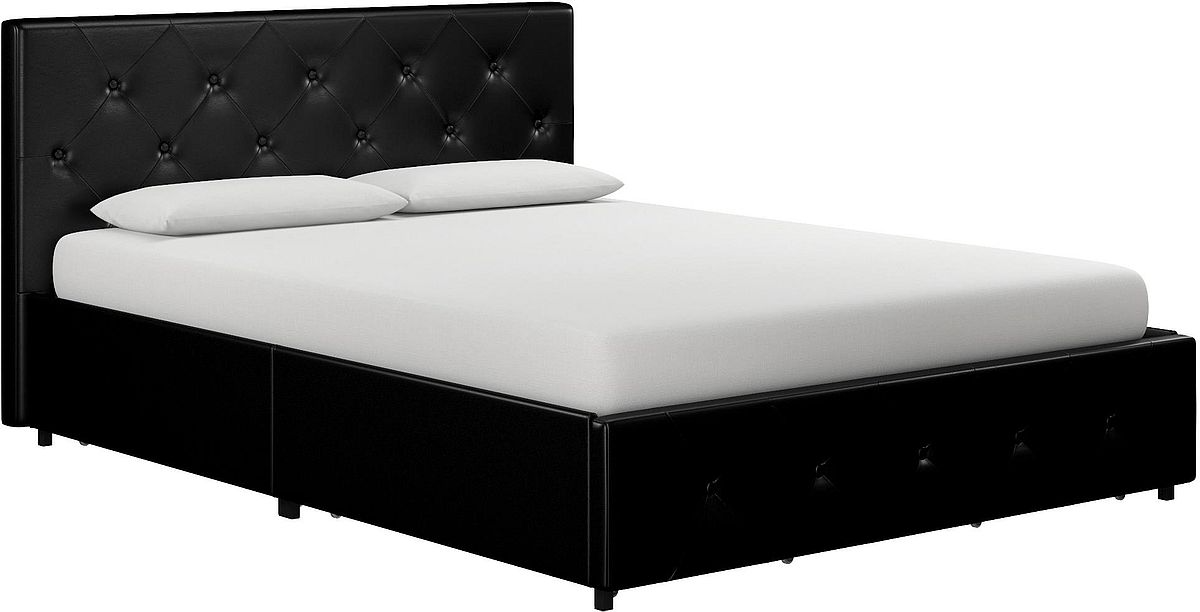 The Dakota upholstered bed with storage drawers ticks off all the elements for a perfect bed – style, comfort and functionality. This contemporary and chic bed frame is designed with graceful button tufted diamond patterns on both the headboard and footboard and upholstered in faux leather.Read More