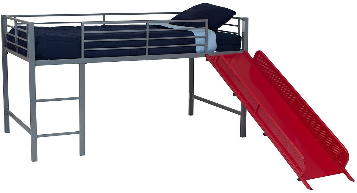 The dhp furniture® Laurie junior twin metal loft bed with slide turns any room into a playroom! Your child will love the whimsical design, the decorative curtains you can add for privacy and the hidden space beneath the bunk bed.Read More