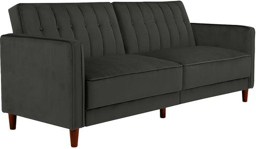 The pin tufted transitional futon is the ultimate in style! The design itself is stunning. It combines thick cushioning with tufted velvet, sleek arms, tapered wooden legs, and a vintage look that takes you back to the bold and luxurious days of the 1950s.Read More