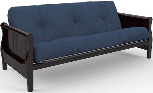Featuring solid wood arms with an espresso finish, it will surely compliment any room décor. This futon quickly and easily converts from sofa to full size bed to help you sleep or sit in ample comfort. This mattress is built to hold up to everyday use.Read More