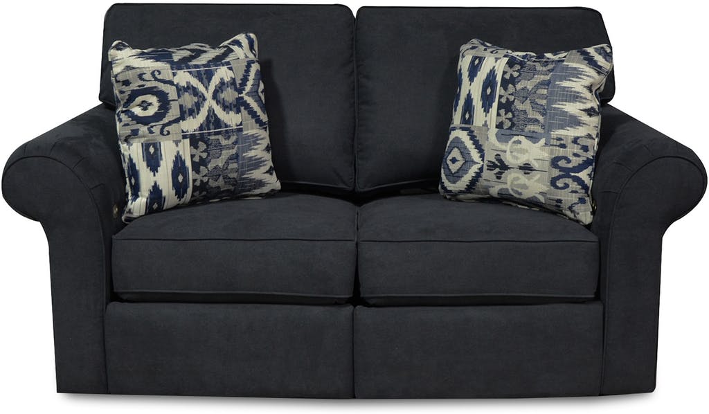 Back and seat construction are both sinuous wire. Back cushion is semi-attached polyester fiber fill with zipper access. Seat cushions are block foam with polyester fiber wrap. Legs are 2.25 in. pop-in. Two 20 in throw pillow is standard. Welt is matching. Interlock Patent is standard. Coil cushion & Frame Coil are optional at a small upcharge.