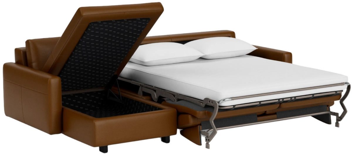 With a compact footprint and a sleek silhouette, our Reva sleeper collection incorporates both ease-of-use and extra storage. No need to remove the cushions: simply pull an effortless lift mechanism to expose its memory foam mattress and let impromptu sleepovers meet their match.Read More