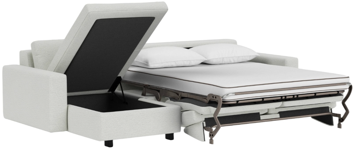 With a compact footprint and a sleek silhouette, our Reva sleeper collection incorporates both ease-of-use and extra storage. No need to remove the cushions: simply pull an effortless lift mechanism to expose its memory foam mattress and let impromptu sleepovers meet their match.Read More