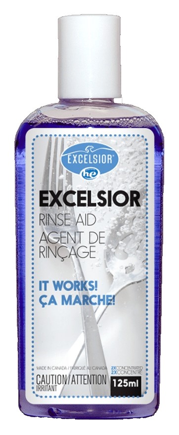 Excelsior HE Rinse Aid is an environmentally friendly formula that is phosphate, and solvent-free, biodegradable and is safe to use in all dishwashers.