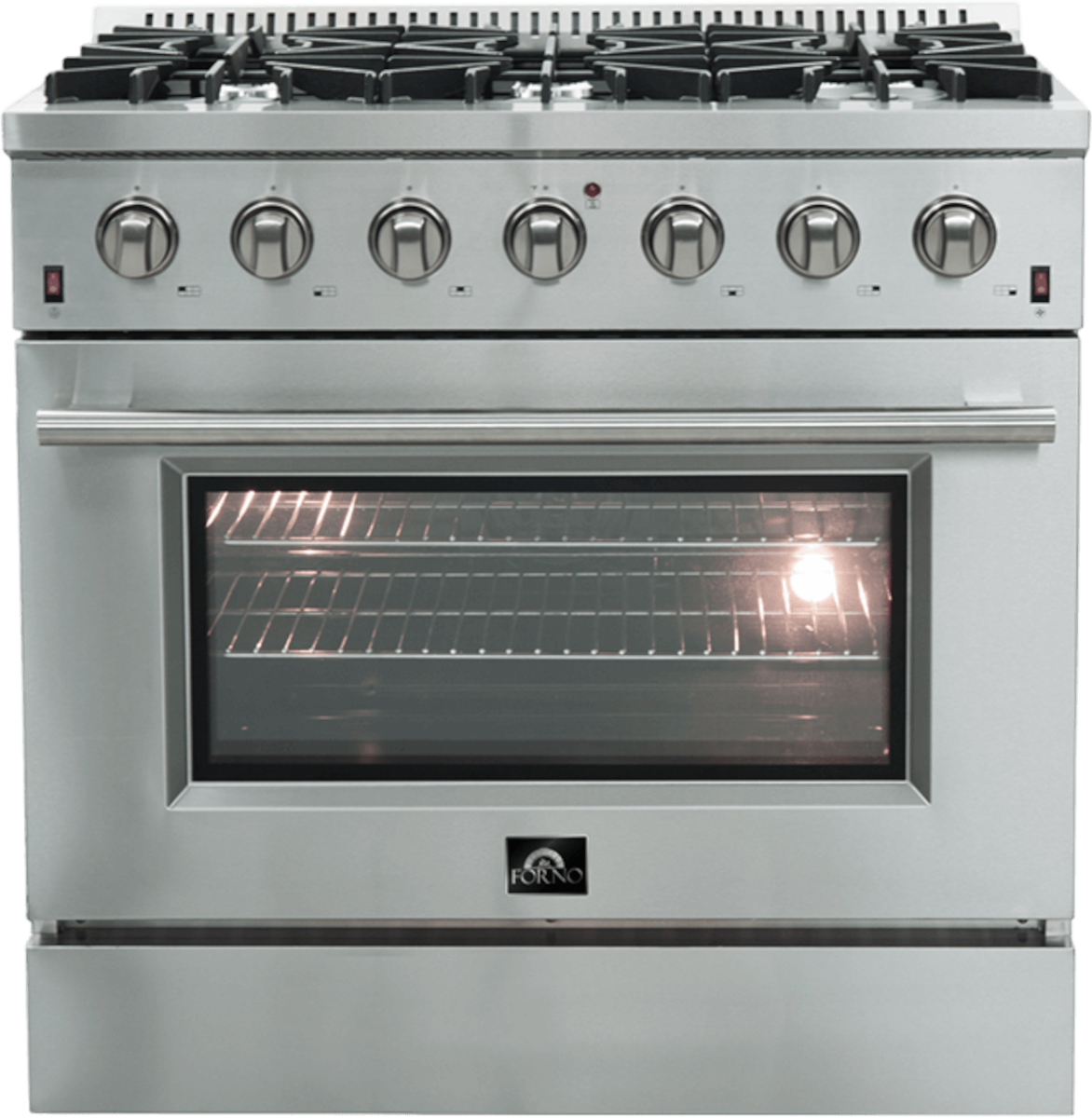 The Forno Galiano 36 Inch Gas Range brings professional styling and performance into your kitchen with its durable stainless-steel design. The cooking surface has 6 sealed burners with a total output of 83,000 BTU, includes one precision 20,000 BTU dual-ring burner that can simmer at 1,000 BTU.Read More