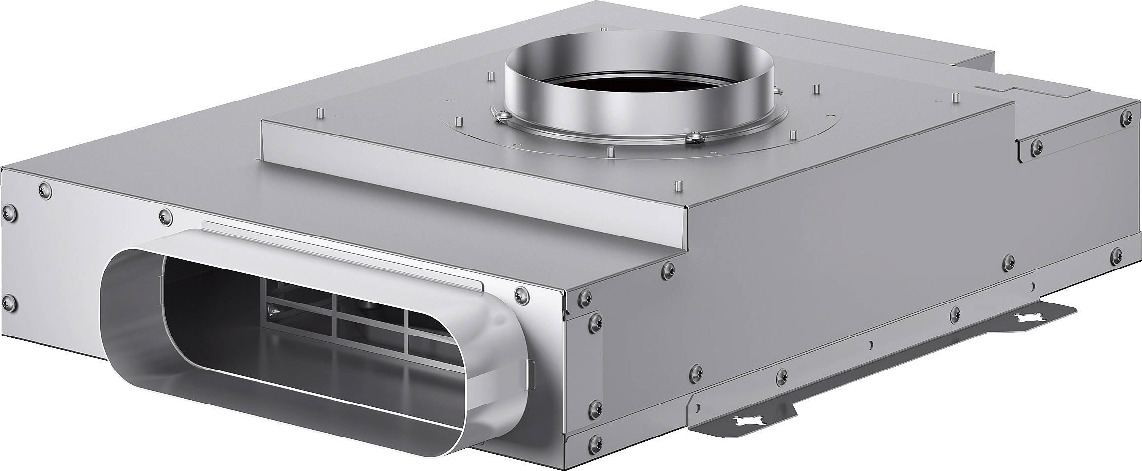 The remote air recirculation fan unit can be combined with one to two downdraft ventilation units. It is an ideal ventilation solution for kitchen islands.