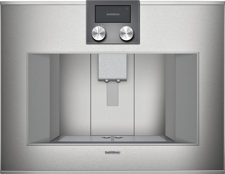 Gaggenau 400 Series Stainless Steel Built-In Coffee Maker with child lock safety and LED lightings. Continuous flow heater means no waiting time and constant brewing temperature. Aroma brewing technology for a full aroma.Read More