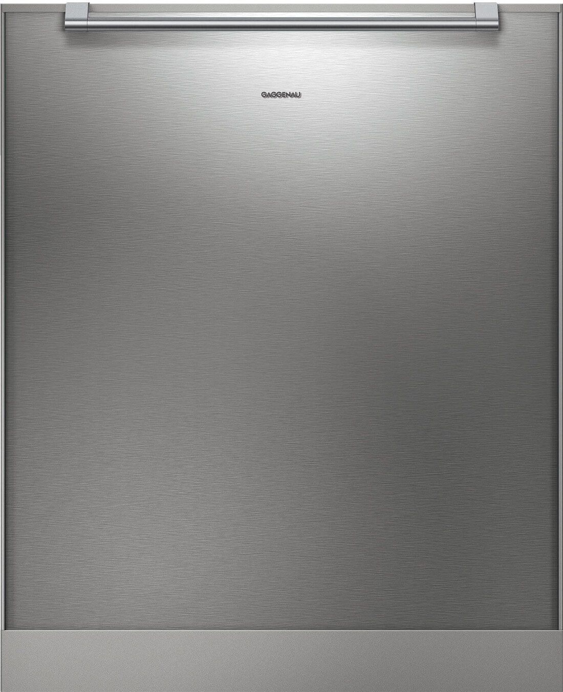 Stainless steel-backed full glass door panel for tall tub dishwashers, handle included