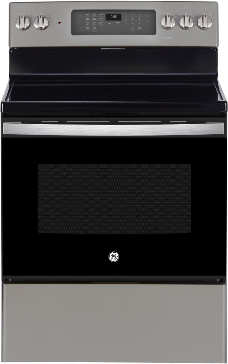Experience the ultimate cooking convenience with the GE range. Its hidden bake elements make cleanup a breeze, while hot surface indicator lights provide safety. Enjoy healthier, crispier dishes in less time with the no-preheat air fry feature. The self-clean option uses steam for quick, odor-free cleaning. With true European convection, you'll achieve professional-level baking and roasting results with even heat distribution.Read More