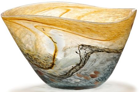 Veins of amber, blue and black combine in perfect unison to create this striking asymmetrical bowl.Read More