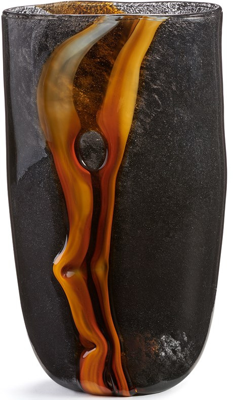 Make a statement in any space with this visually stunning coloured glass vase with textured amber design elements and a bold colour palette.Read More