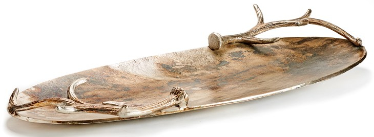 Add artful inspiration to any space with this large oval tray with two antler handles and antique bronze finish.Read More