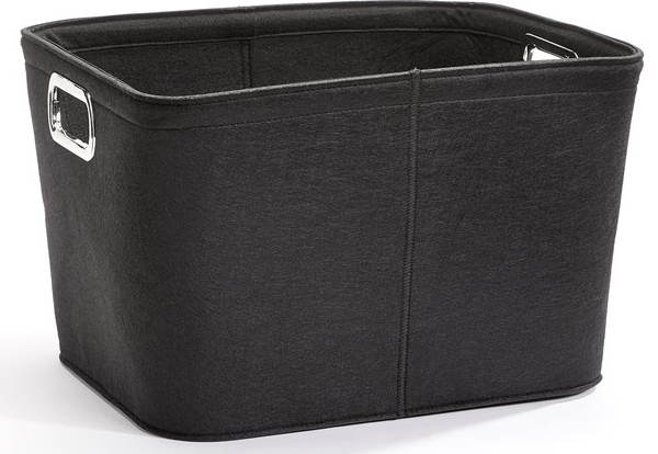 A black basket with a large opening, deep sides for extra storage and cut-out handles. This storage solution was designed to be seen, not stacked away in a closet. A soft look exterior with a bit of flexibility.Read More