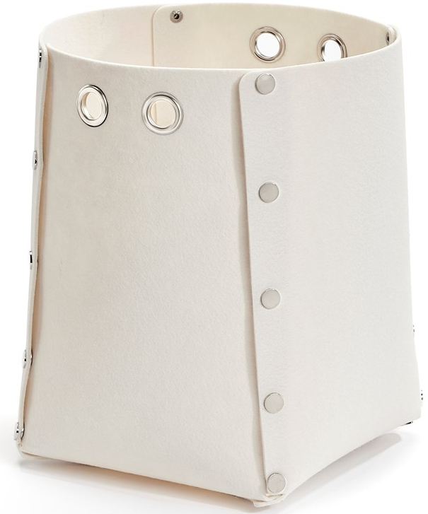 This white basket has large metal grommet ring handles for easy carrying. A chic and stylish storage solution for your laundry. Metal snaps undo to make the basket fully collapsible and compact when not in use.Read More