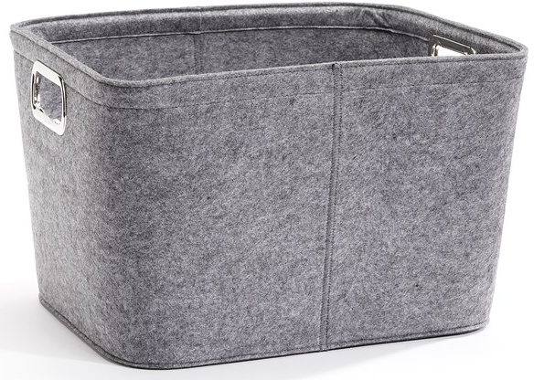 A gray basket with a large opening, deep sides for extra storage and cut-out handles. This storage solution was designed to be seen, not stacked away in a closet. A soft look exterior with a bit of flexibility.Read More