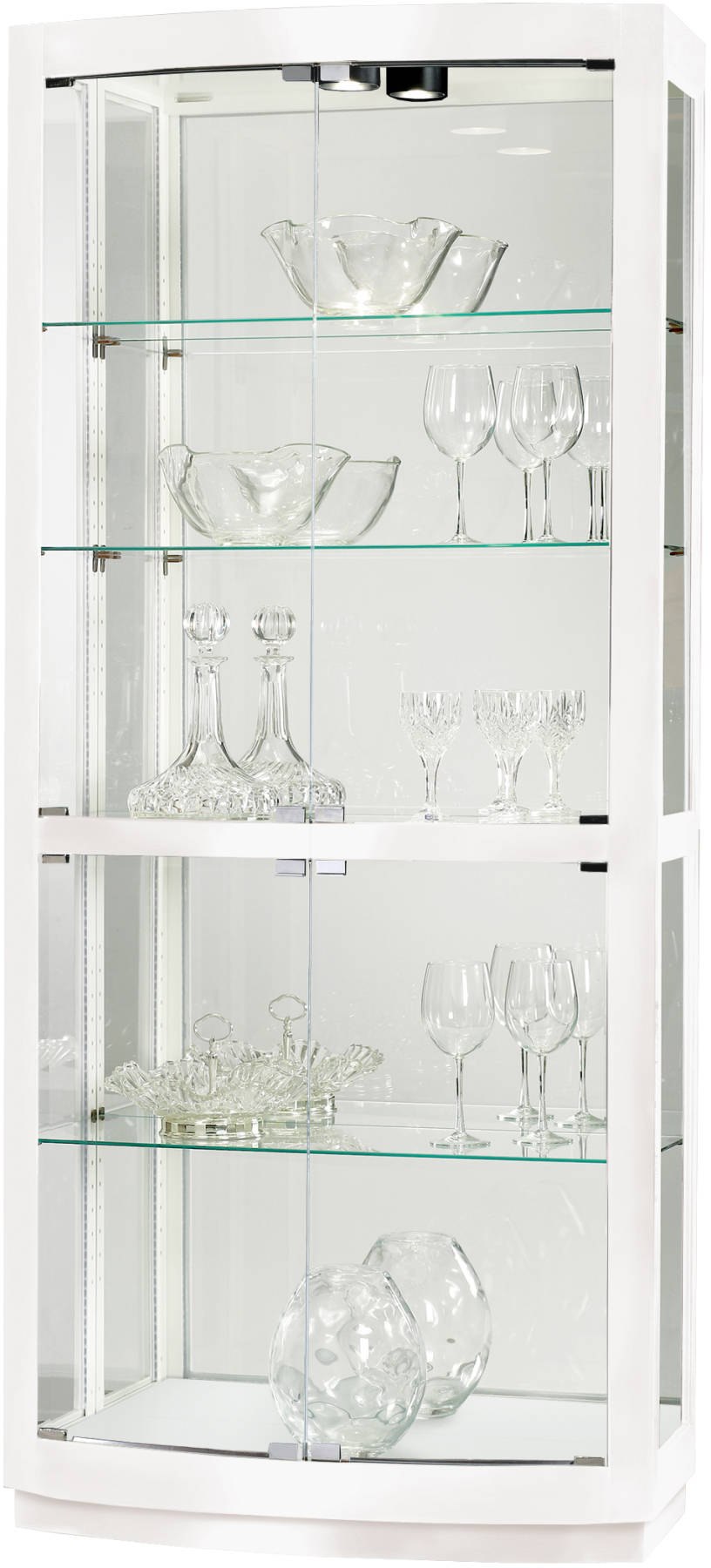 This transitional curio cabinet features four curved front glass doors with nickel finished hardware.Read More
