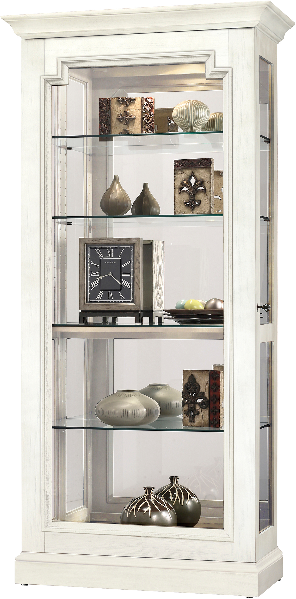 Incomparable workmanship. Unsurpassed quality. A quest for perfection. It’s what Howard C. Miller insisted on when he founded the company back in 1926, at the age of 21. During World War II, Howard Miller joined forces with the Ford Motor Co. to produce anti-aircraft covers. In the 1960s, the company turned its attention to grandfather clocks, eventually earning the company the title of "World's Largest Grandfather Clock Manufacturer." In 1989, Howard Miller began creating collectors cabinets with the same attention to detail and craftsmanship inherent in their clockmaking. Fashioned from glass and hardwoods, the cabinets are ideal for displaying heirlooms, plates, glassware and other collectibles.