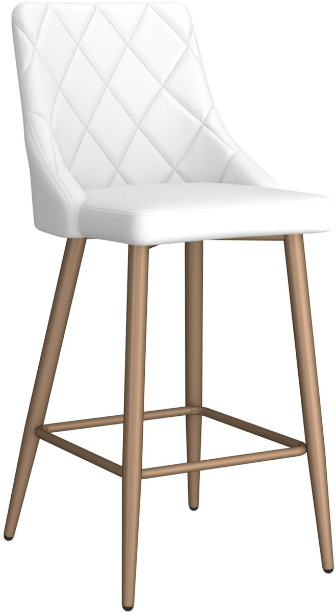 Comfortable, served seating atop a fixed height frame gives this counter stool stability and reliability. The diamond-stitched patterns on the faux leather cushioned upholstery will provide hours of comfort and the aged gold finish will be an easy style win. Elevate your kitchen counters with these gorgeous contemporary stools.Read More