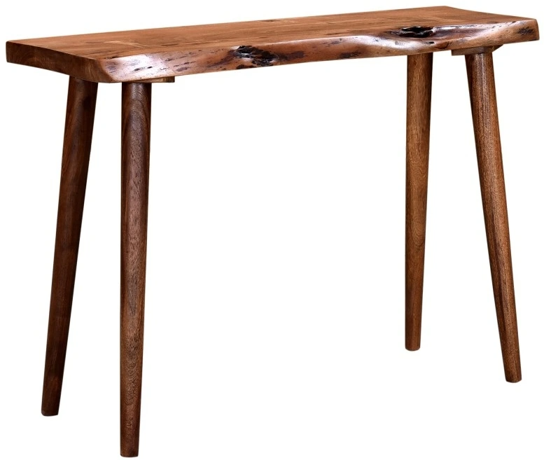 The live edge detailing brings this console table to life, along with the naturally occurring solid acacia wood details. Each piece is handcrafted and hand-finished, bringing a unique touch to every rustic table. The narrow width of this wooden console table allows for flexibility of use.Read More