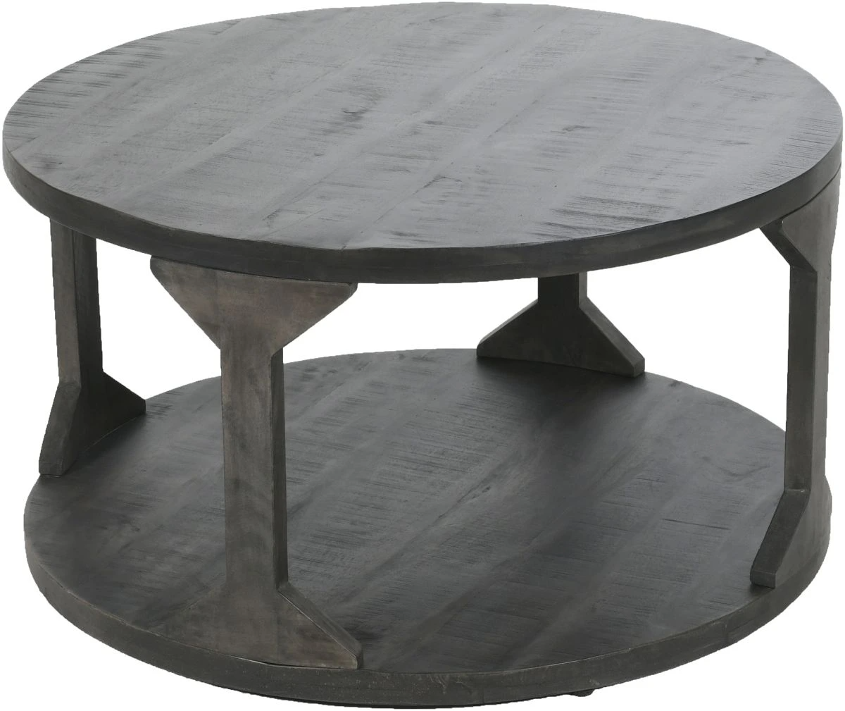 Rough gray finishing emphasizes the fine grain of the solid mango wood
